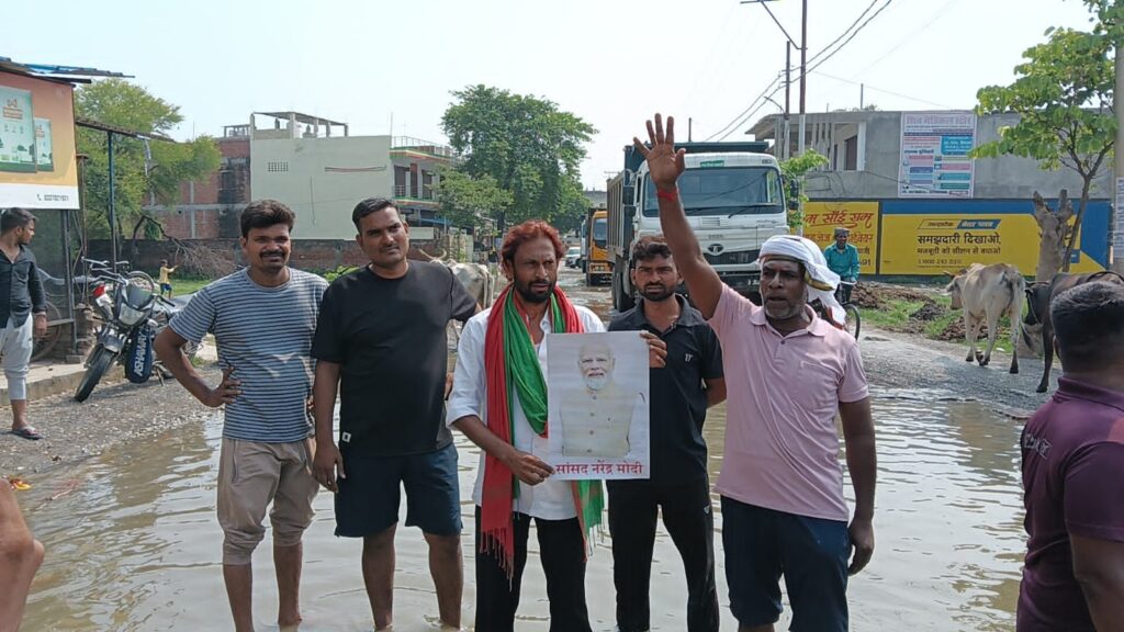 वाराणसी। सीर गोवर्धनपुर वार्ड नं. 23 के संत रविदास मंदिर वाले मार्ग पर लगभग छह महीनों से जल जमाव और गड्ढों की समस्या बनी हुई थी। सड़क इतनी जर्जर हो चुकी थी कि स्थानीय जनता का आवागमन पूरी तरह बाधित हो गया था। विभागीय अधिकारियों से लगातार आश्वासन मिलने के बावजूद कार्य न होने पर आज क्षेत्रीय जनता मजबूर होकर सड़क पर उतरी और चक्का जाम कर धरना-प्रदर्शन किया।
